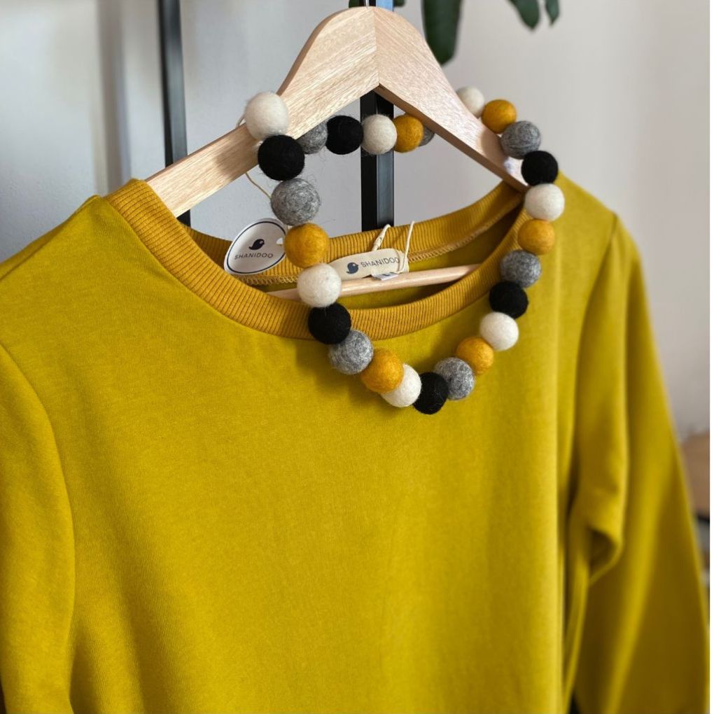 Skvěle vypadají samostatně, ale také s barevnými plstěnými korálemi SHANIDOO, které outfit nádherně rozzáří.