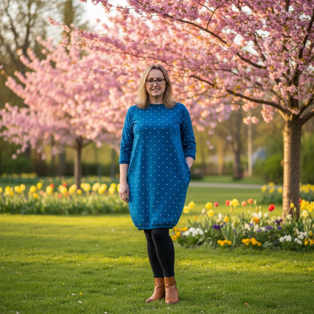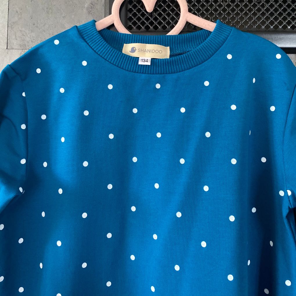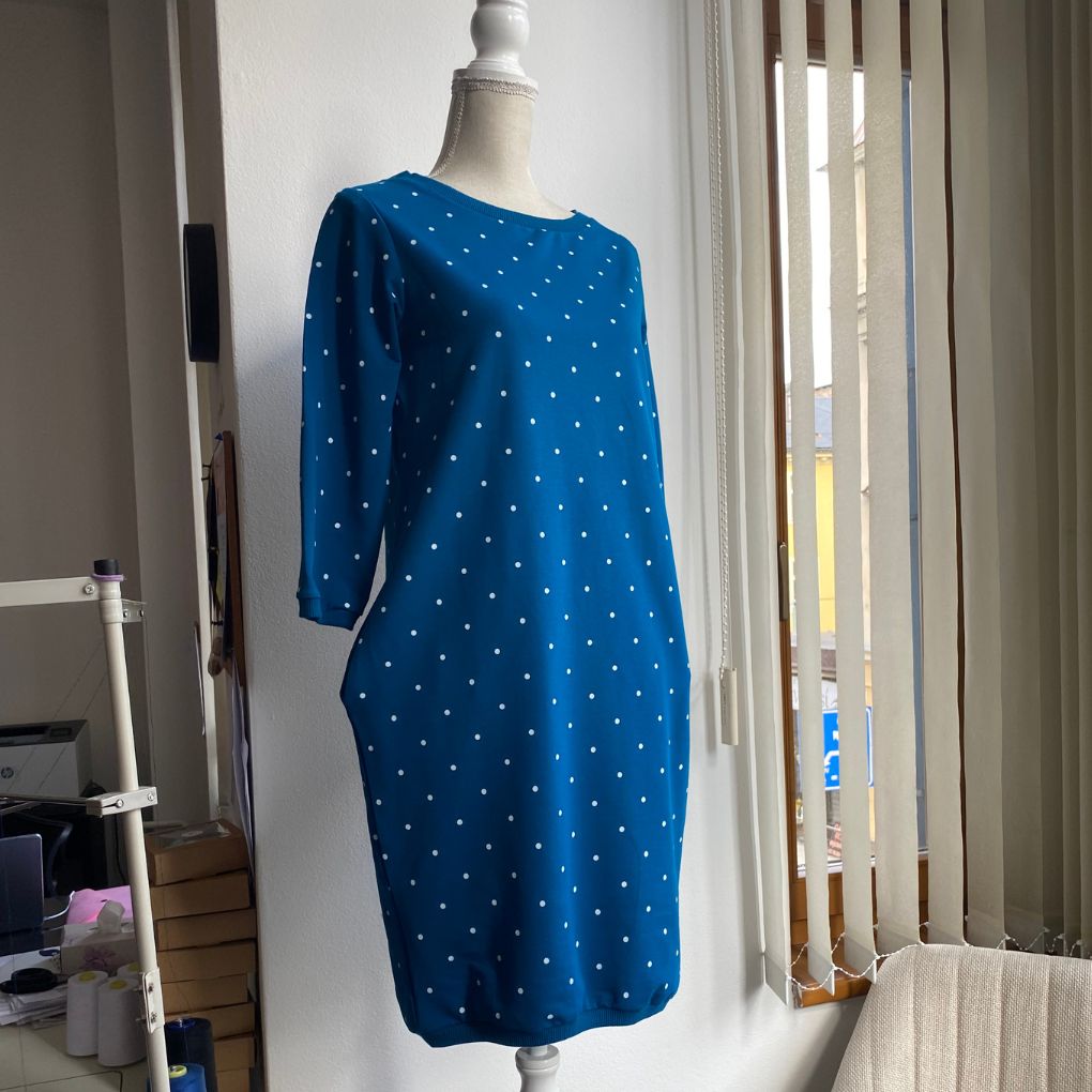 Dámské šaty Petronela jsou výrazným, přesto neuvěřitelně pohodlným kouskem, který zaujme na první pohled. Šaty jsou ušité z kvalitní teplákoviny v modro zeleném odstínu s bílými puntíky. Působí elegantně, ale stále maximálně pohodlně. Jsou ideální pro každodenní nošení – do práce, města, na volný čas i na doma.