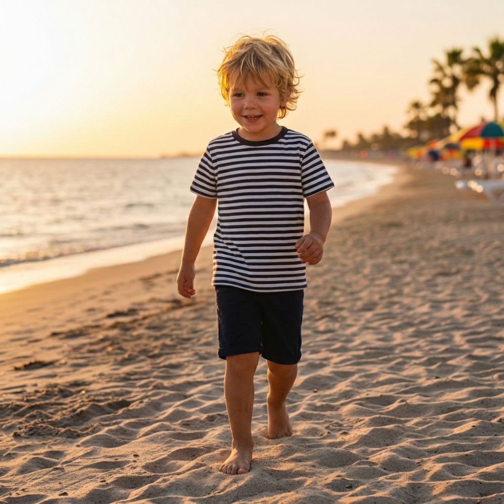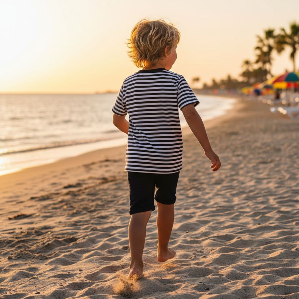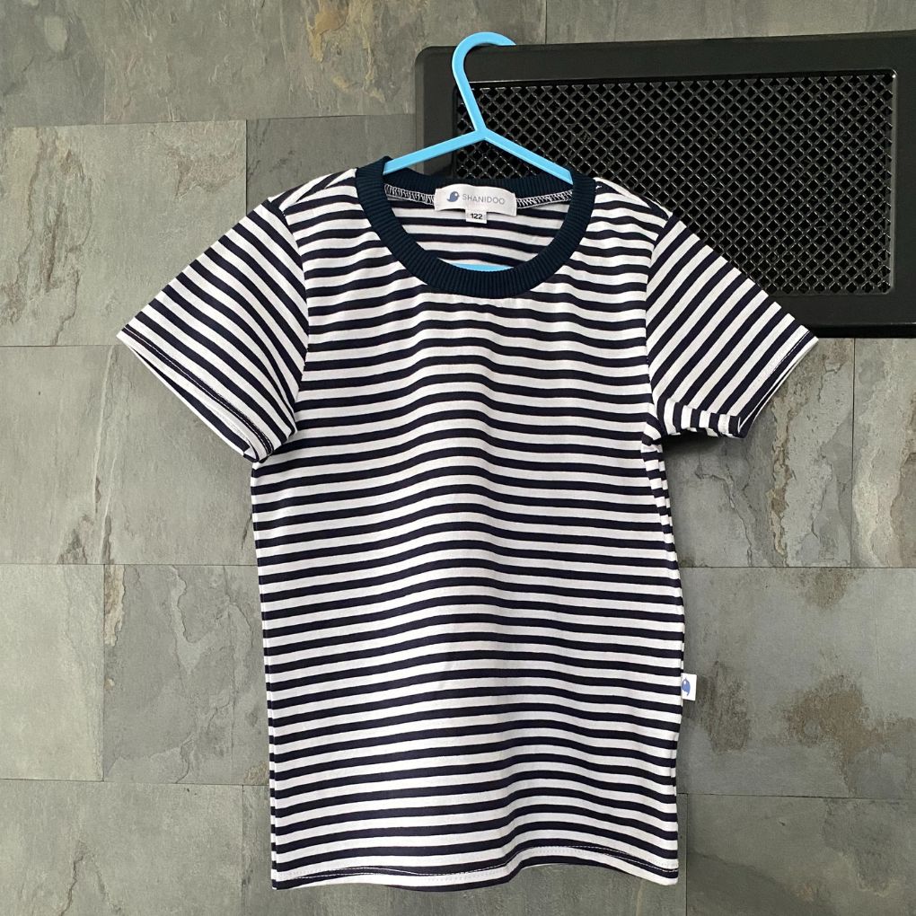 Pruhovaný bavlněný úplet s elastanem, měkký náplet u krku a pohodlný střih z něj dělají ideální tričko na každý den – do školky, na výlet i k moři.