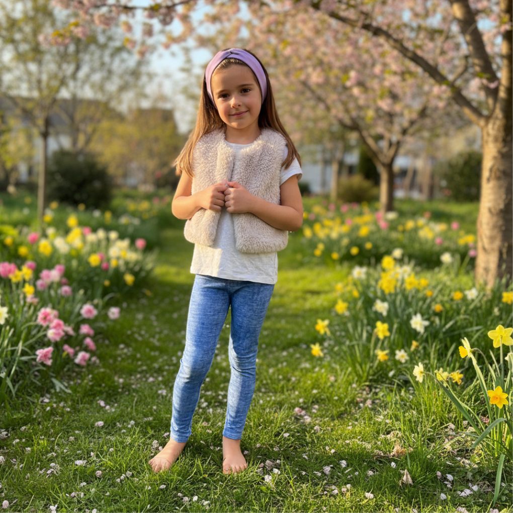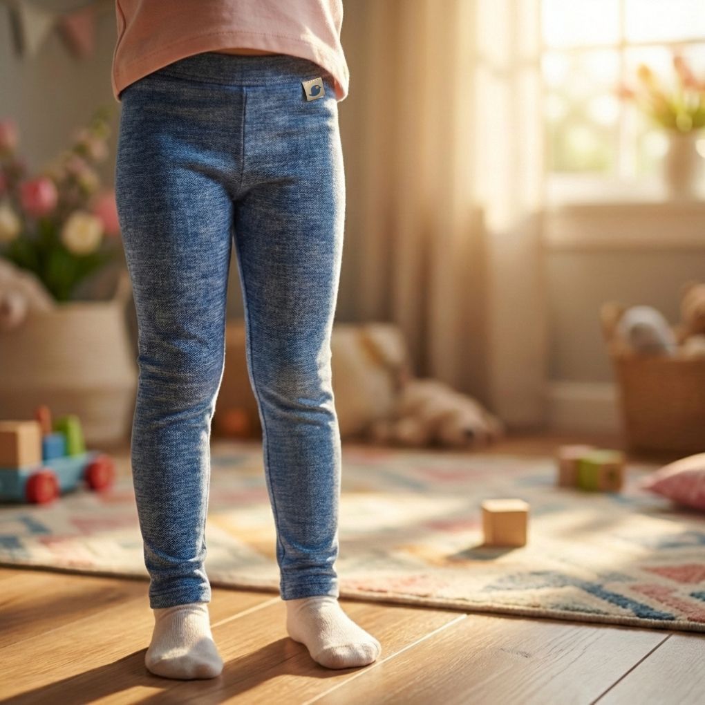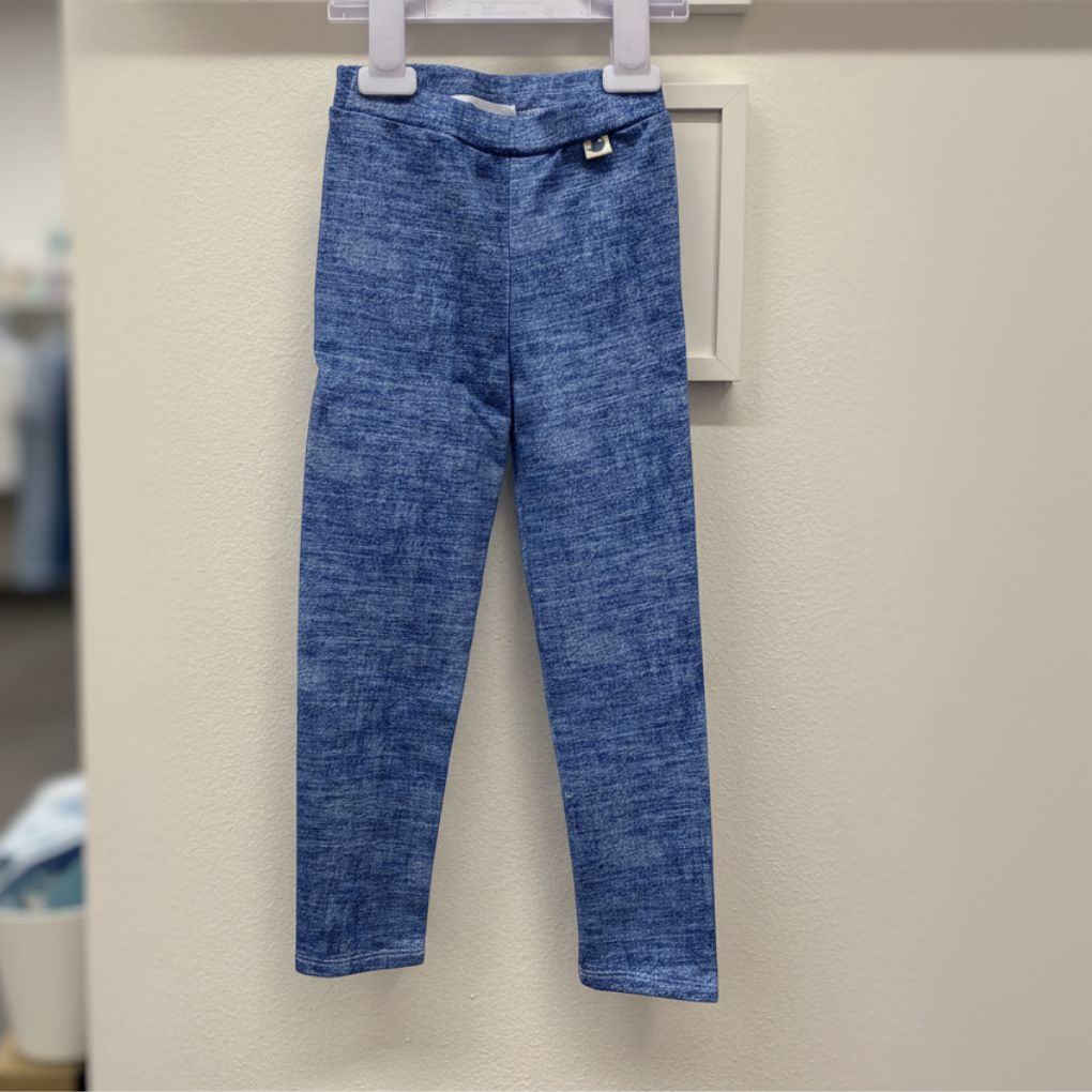 - Dívčí legíny z pružné teplákoviny s potiskem jeans.