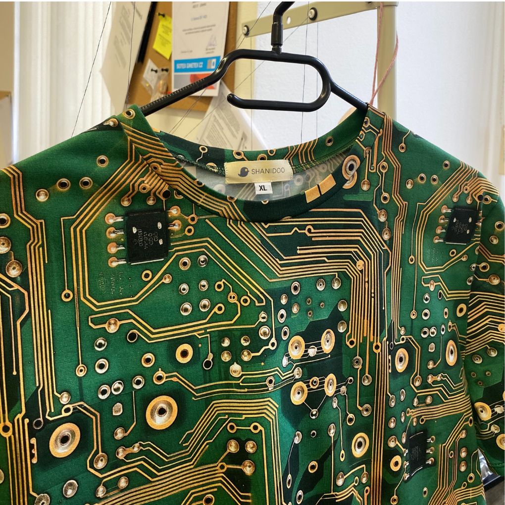 Triko v designovém vzoru základní desky – Tištěné spoje pro fanoušky micropočítačů.