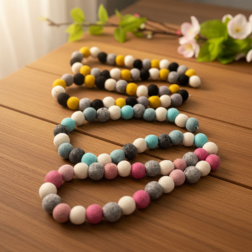 Plstěné korále (délka cca 58 cm, průměr korálků 1,8 cm)