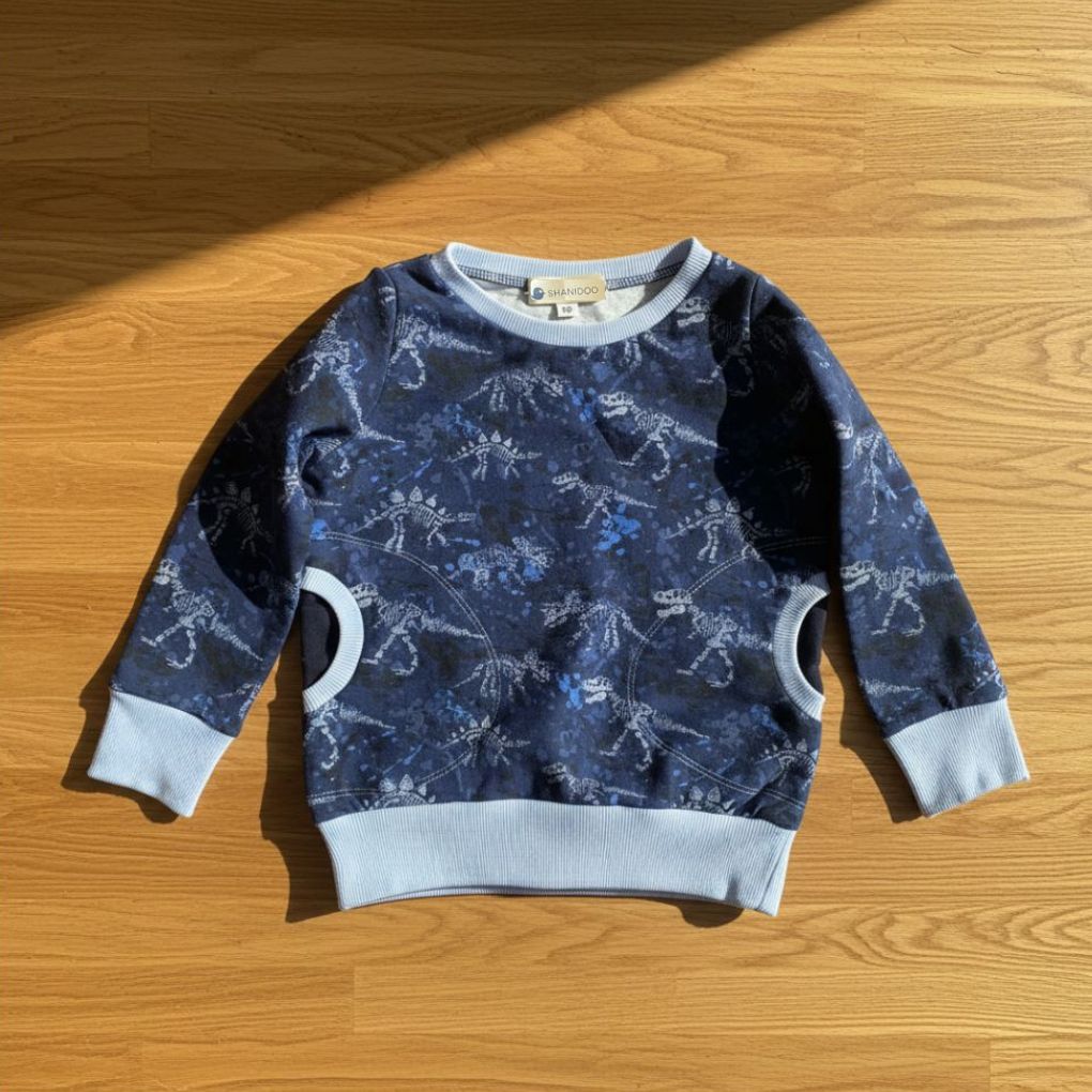 Chlapecká tepláková souprava DINO je pohodlný a stylový set pro všechny malé dobrodruhy, kteří milují dinosaury. Mikina je ušitá z příjemné teplákoviny s atraktivním vzorem dinosauřích kostí v modrých tónech, který dodává celému outfitu moderní a klučičí vzhled.